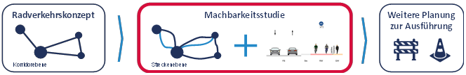 Die Realisierung der identifizierten Vorzugsvariante wird daraufhin aufgrund der hohen Bedeutung der Verbindung laut Umsetzungskonzept prioritär angegangen. Dieses Umsetzungskonzept für die Maßnahmenvorschläge der Radverkehrskonzepte dient der konsequenten Weiterentwicklung des Vorgehens in der Radverkehrsförderung von einem „ad-hoc Ansatz“ hin zu einem systematischen, integrierten Ansatz. Die Umsetzung der infrastrukturellen Maßnahmenvorschläge ist grundsätzlich für die kommenden fünfzehn Jahre vorgesehen. Die Reihenfolge, in der die Maßnahmen angegangen werden, ist unter Berücksichtigung der Priorität der Maßnahme, den Zielen aus dem Vertrag mit dem Radentscheid, der Synergien mit weiteren geplanten Baumaßnahmen, einer ausgeglichenen Verteilung der Bau- und Planungsleistungen mit der besonderen Berücksichtigung von Maßnahmen auf den Entwicklungskorridoren (z.B. Campus – Innenstadt) erfolgt.