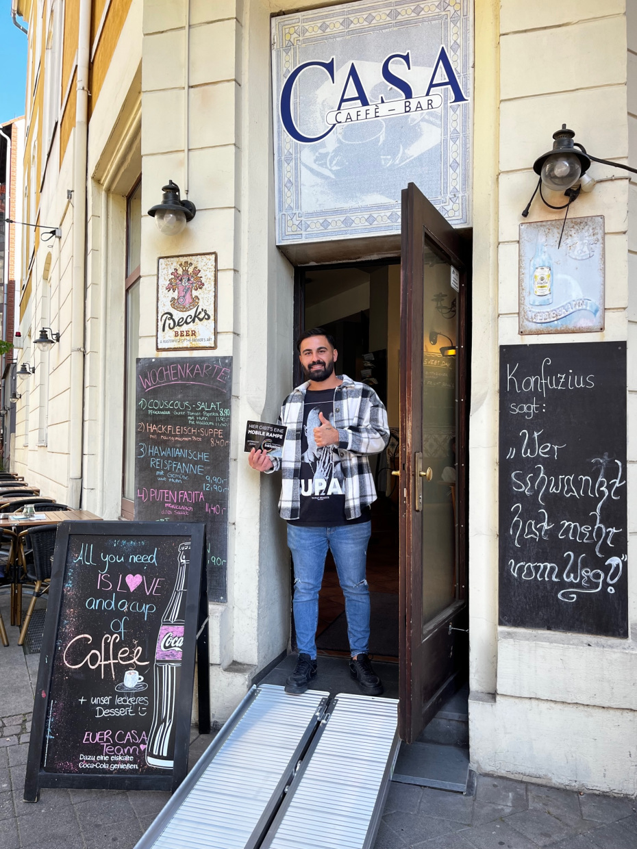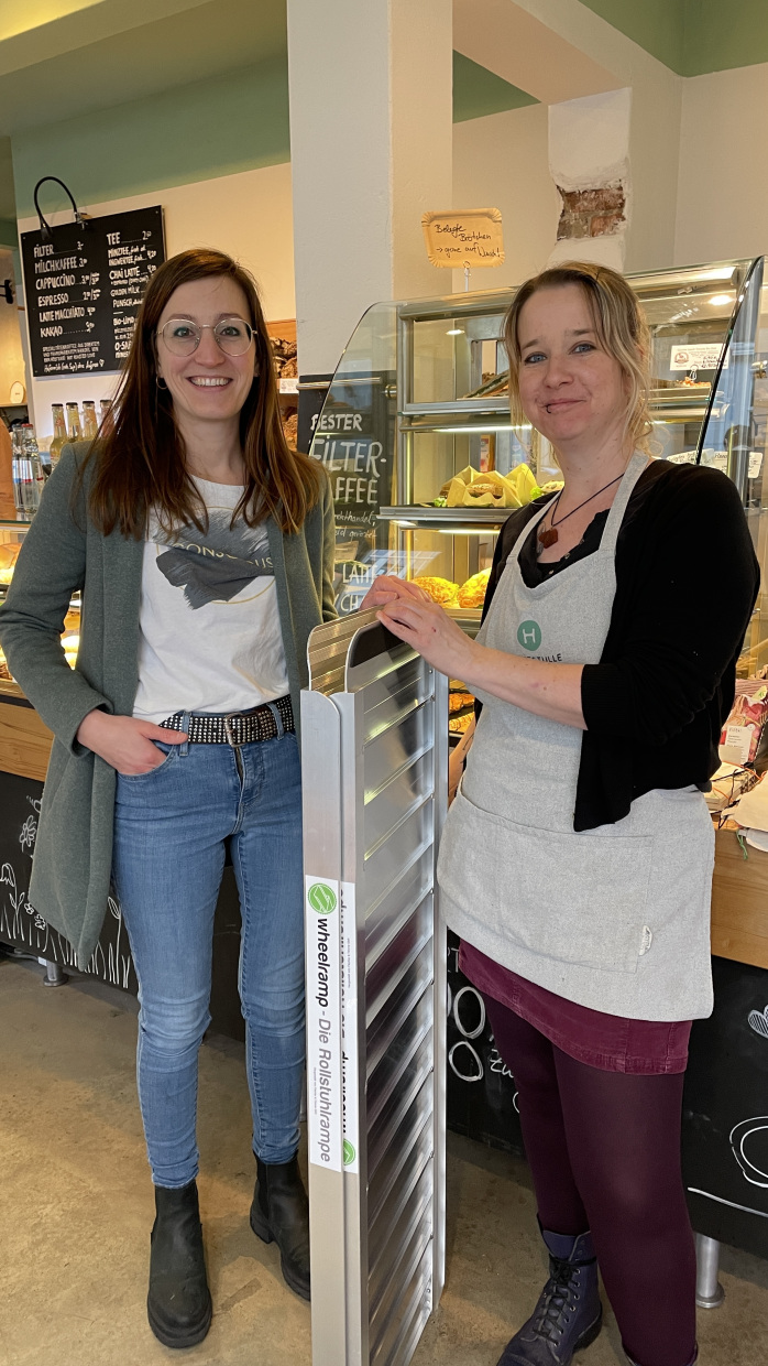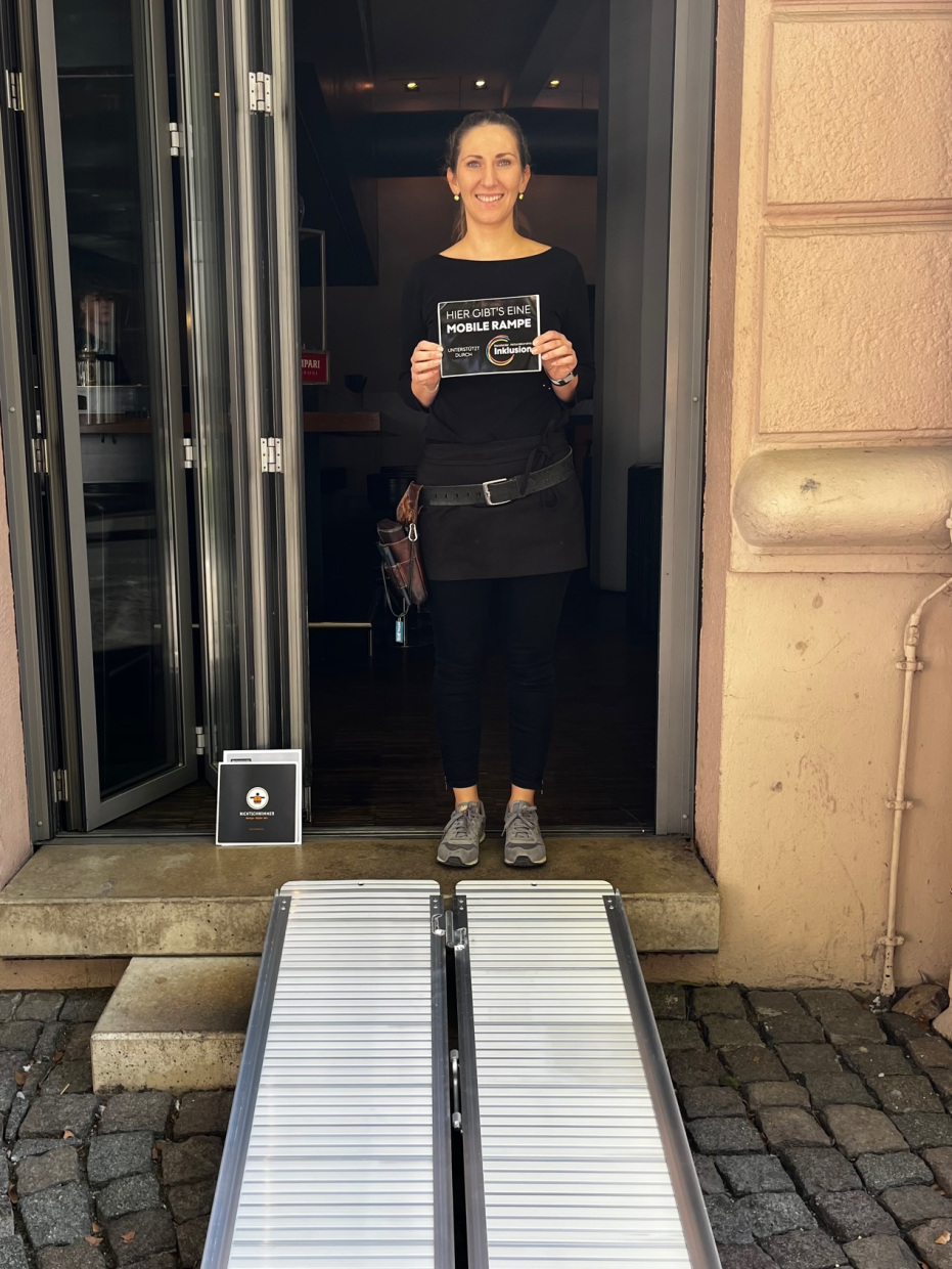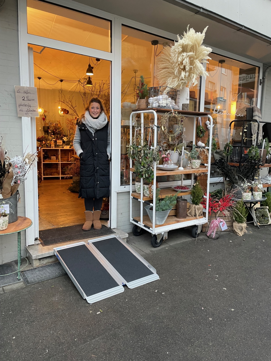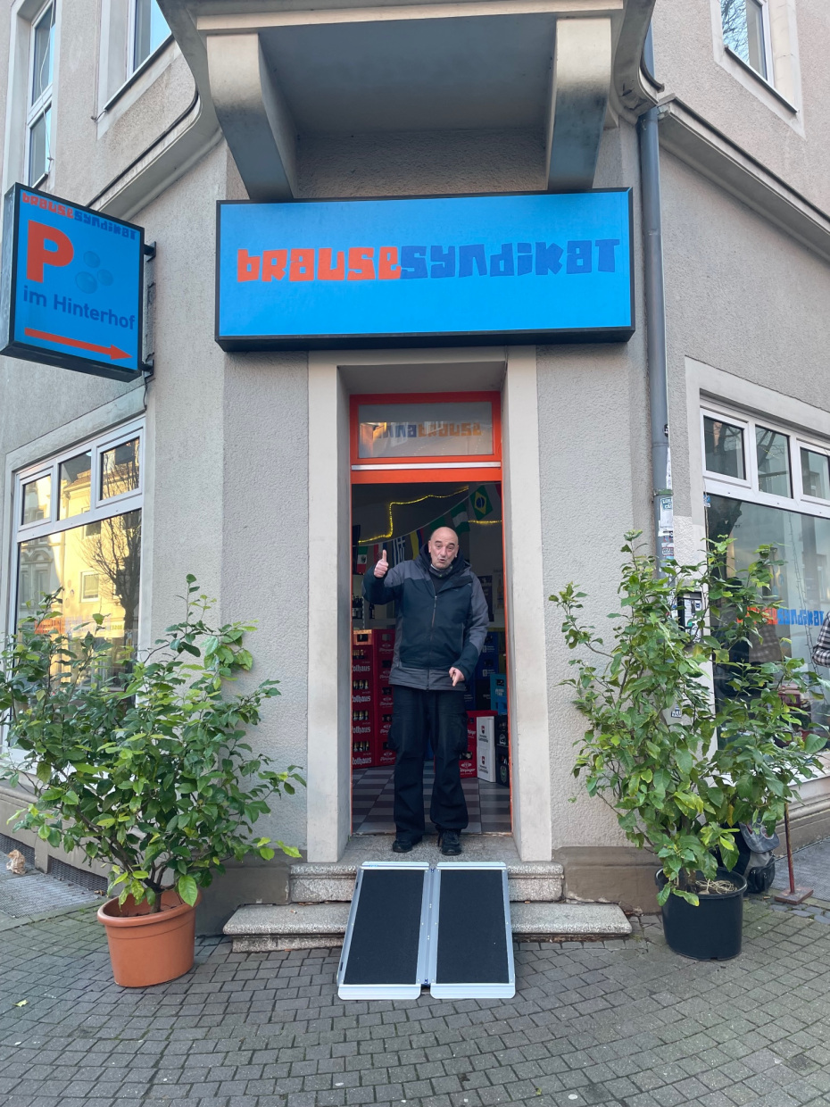 - Das Geschäft kann diese Rampe dann draußen vor die Tür stellen und bei Bedarf damit die Barriere abbauen