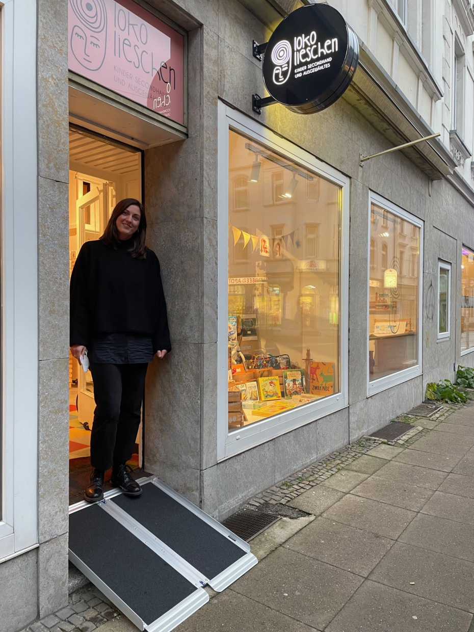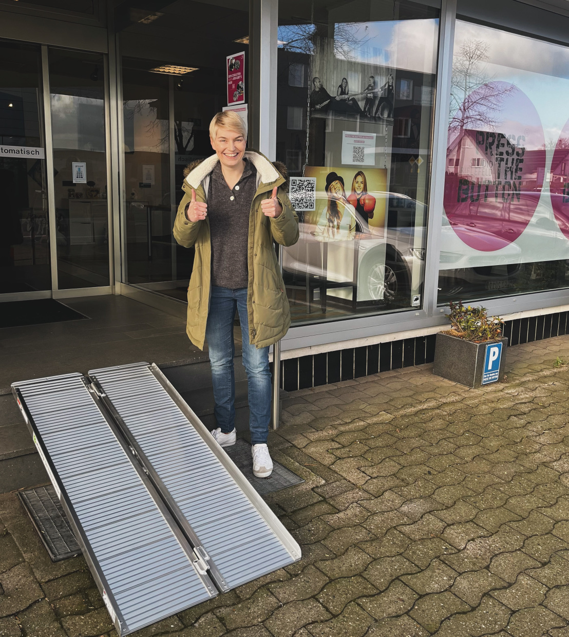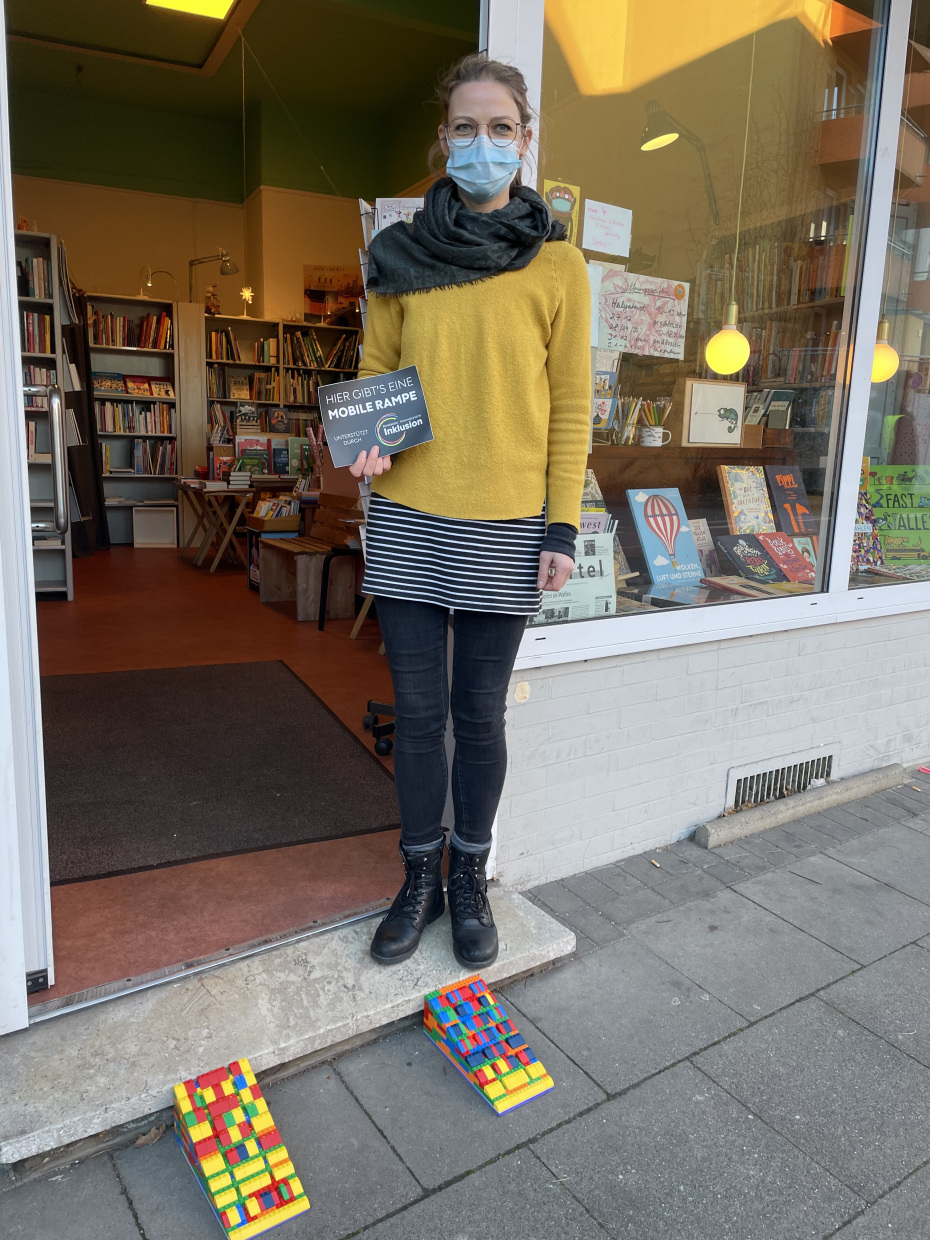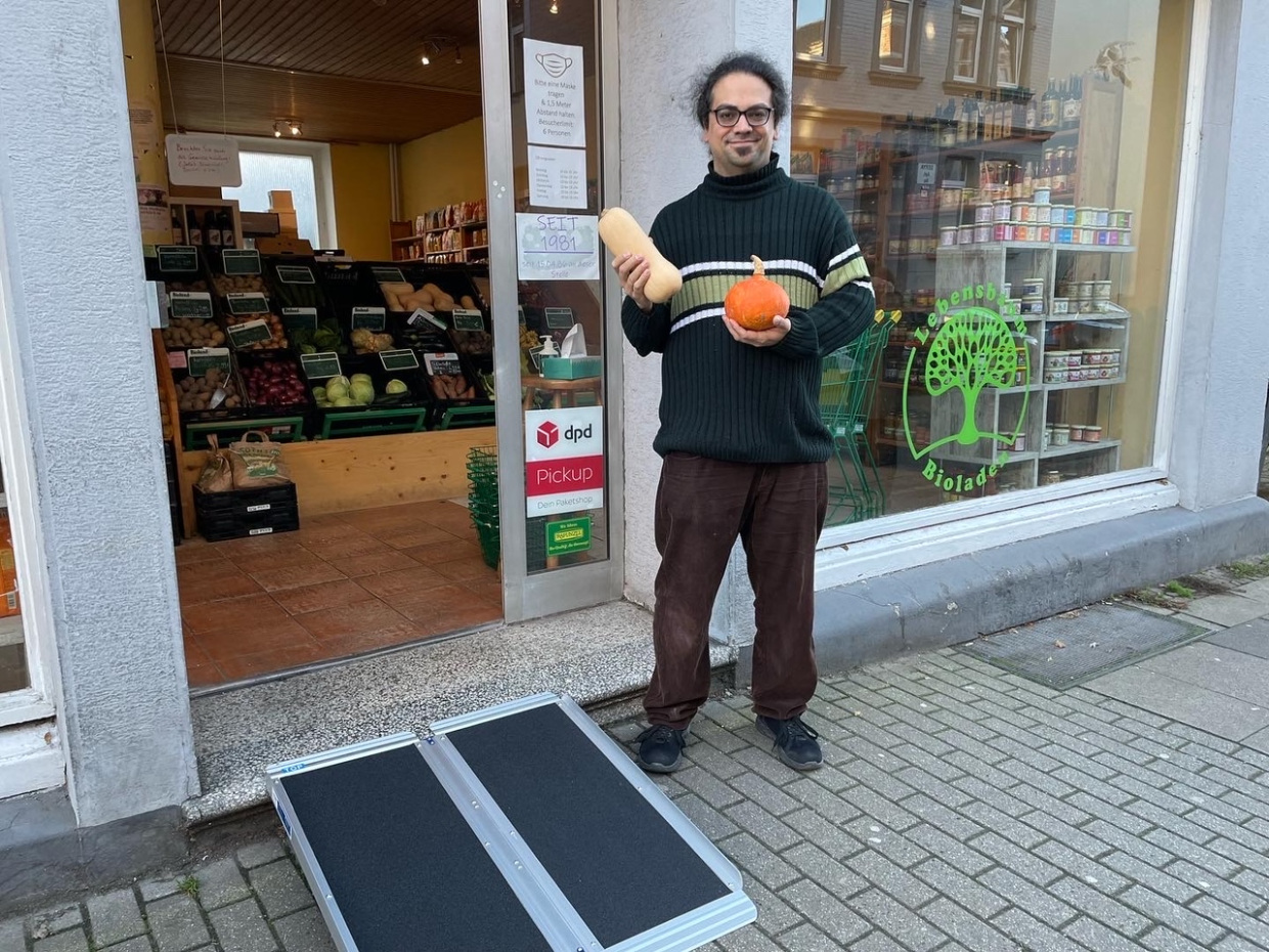 - Das Geschäft kann diese Rampe dann draußen vor die Tür stellen und bei Bedarf damit die Barriere abbauen