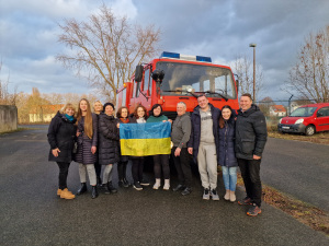 Dank zahlreicher Spenden haben Olaf Selonke, zuständig für Städtepartnerschaften bei der Stadt Bielefeld, und die Deutsch-Ukrainische Gesellschaft das Feuerwehrfahrzeug bei einem Händler in Bremen für 15.000 Euro gekauft. Auch zwei Notstromgeneratoren wurden organisiert. Sie wurden von den Stadtwerken Bielefeld und der Stadt Halle gespendet.
