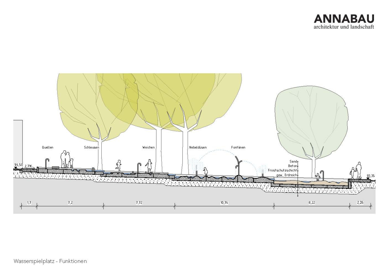 Der politische Beschluss für den Bauabschnitt 1b Freianlagen Neue Mitte konnte bereits im September 2023 erzielt werden, Städtebaufördermittel werden zum Jahr 2024 beantragt. Vorgesehen ist für den nächsten Bauabschnitt, das weitere FZZ-Umfeld durch einen Wasserspielplatz und Gestaltung der Straßenrandbereiche aufzuwerten. Die bisherigen Stellplätze sollen dafür auf der Donauschwaben- und Stauferstraße realisiert und die Straßenbreiten entsprechend reduziert werden.