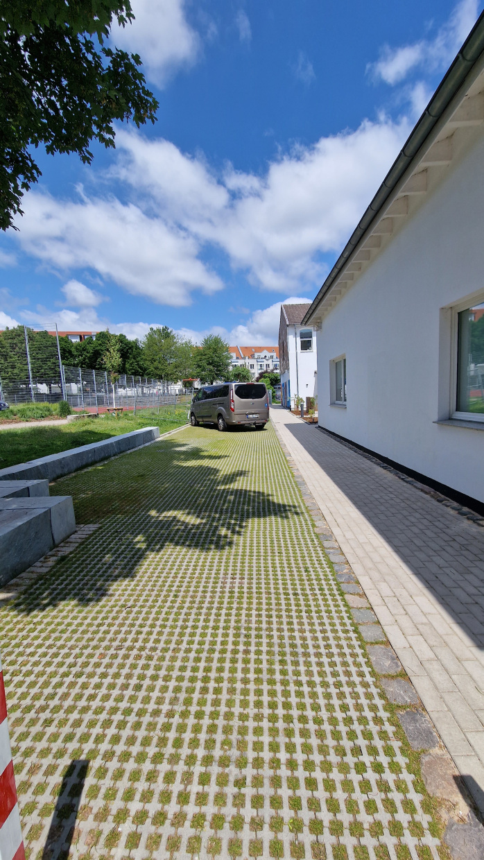 Der Grünzug wird intensiv durch die Bewohnerschaft im Quartier genutzt. Das Umweltzentrum soll nun für eine bessere und barrierefreie Zugänglichkeit über den offenen Innenhof an den Grünzug angebunden werden. Die Außenanlage des Umweltzentrums wurde hinsichtlich der ökologischen Revitalisierung umgestaltet.