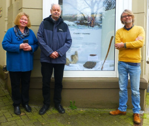 Brachten die Mammutfossilien in die Arndtstraße (v.l.): Marion Scheuer und Heinz-Dieter Zutz vom namu sowie Verleger Roland Siekmann. Foto: Susanne Schultz.