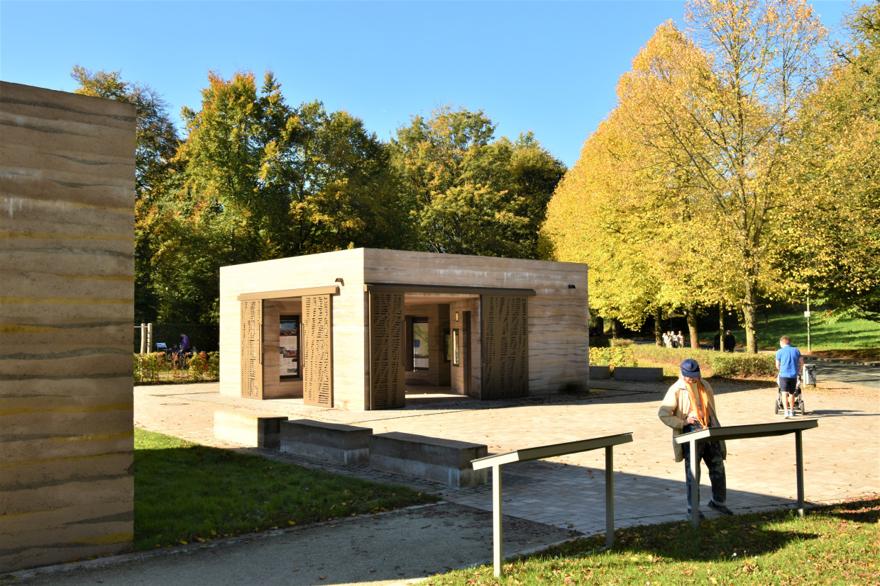 - Durch Initiative des Vereins Gegen Vergessen – Für Demokratie e.V. entstand die Landschaftsskulptur „Unter Zwang”, die die ebenfalls vorhandene dunkle Seite der Geschichte des Johannisberges, nämlich das hier gelegene Zwangsarbeiter*innenlager angemessen würdigt und eindringlich den Zwang dokumentiert, dem die damaligen Gefangenen ausgesetzt waren. Ein Corten-Stahlband markiert auf der Schotterrasenfläche einen der damaligen Barackenstandorte.