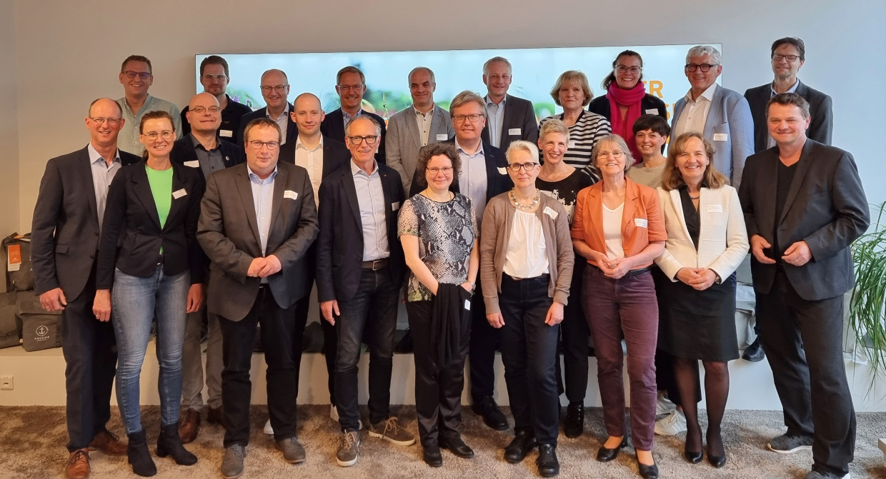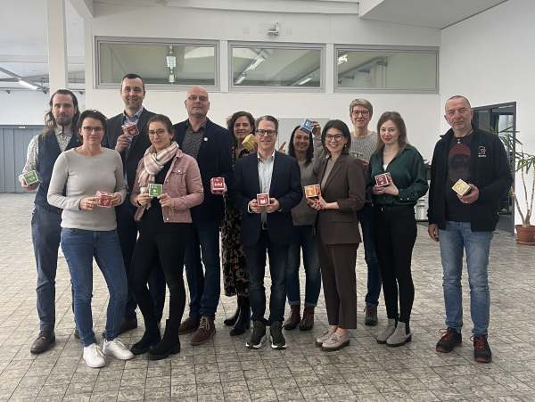 Am 13. März 2024 startete die aktuelle Runde mit dem feierlichen Auftakt. Gastgeber des Kick-Offs war die Firma Euscher GmbH & Co. KG mit Hauptsitz an der Johanneswerk Straße in Bielefeld. Neben den Betriebsvertreter*innen waren auch zahlreiche Vertreter*innen des Lenkungskreises, der Presse und der beteiligten Kommunen anwesend. Voller Elan wurde im Anschluss an den feierlichen Auftakt gemeinsam im ersten Workshop gearbeitet. Das Foto zeigt die Vertreter*innen der Betriebe, der Beratungsfirma B.A.U.M. Consult und der Stadt Bielefeld in den Räumen der Fa. Euscher.