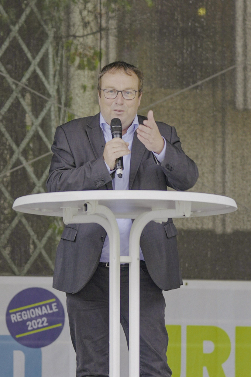 • 11 Uhr: Eröffnung und Talk zur REGIONALE mit Pit Clausen (Oberbürgermeister der Stadt Bielefeld), Oliver Krischer (Minister für Umwelt, Naturschutz und Verkehr des Landes Nordrhein-Westfalen), Christoph Rüther (Landrat Kreis Paderborn) sowie Vertretern der OWL GmbH