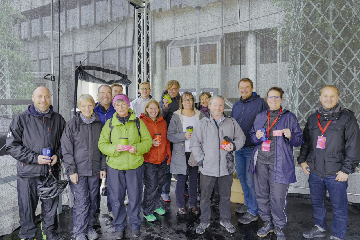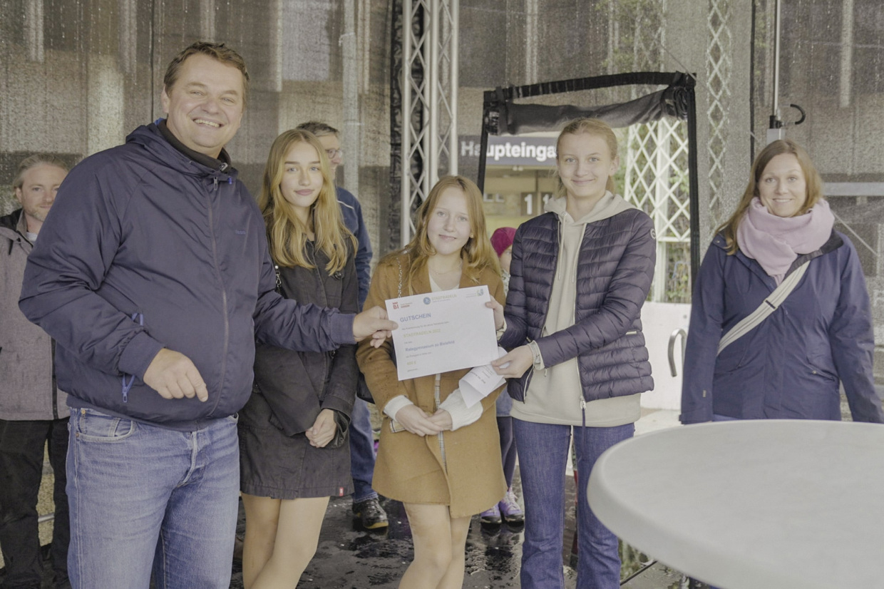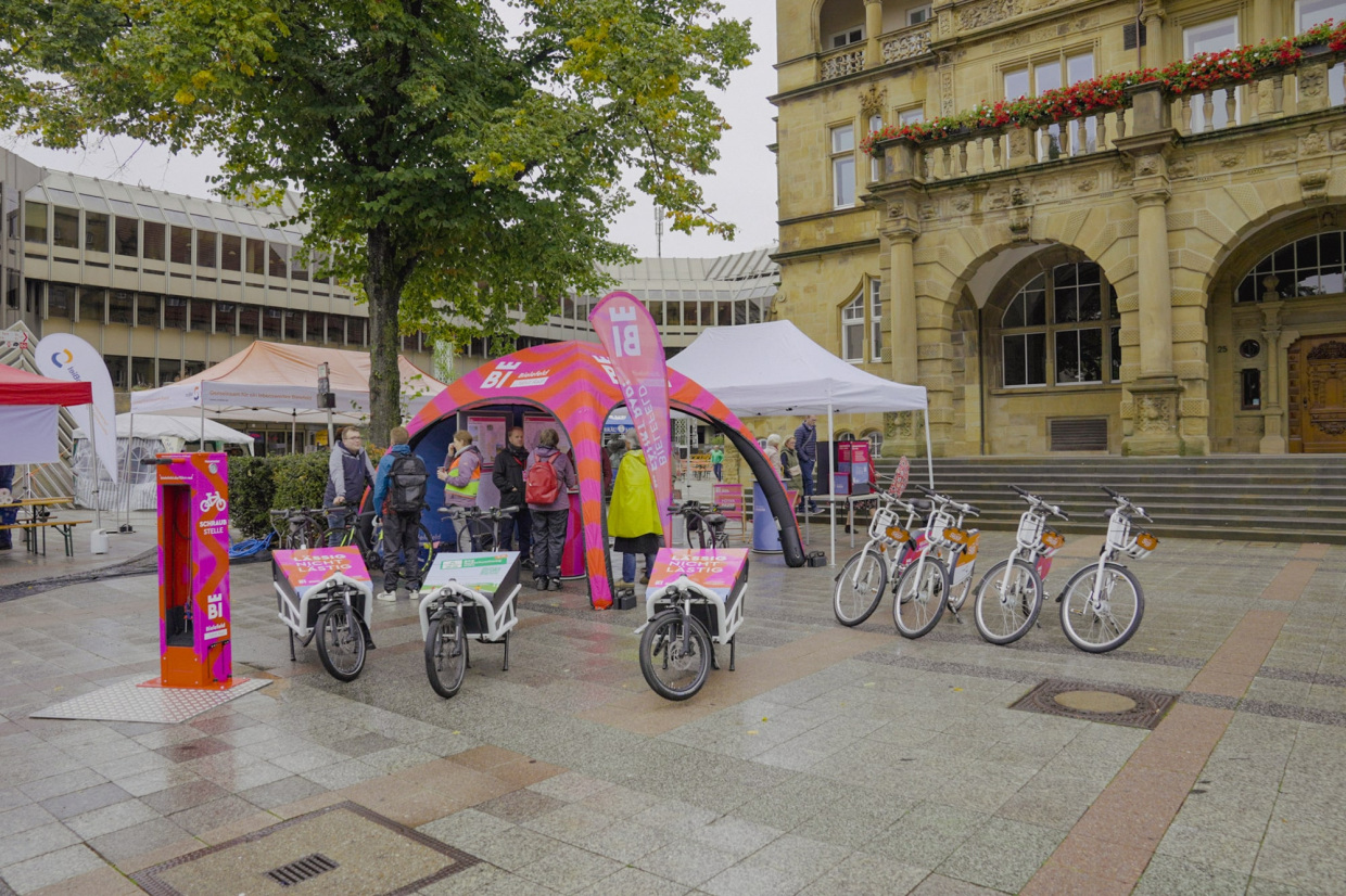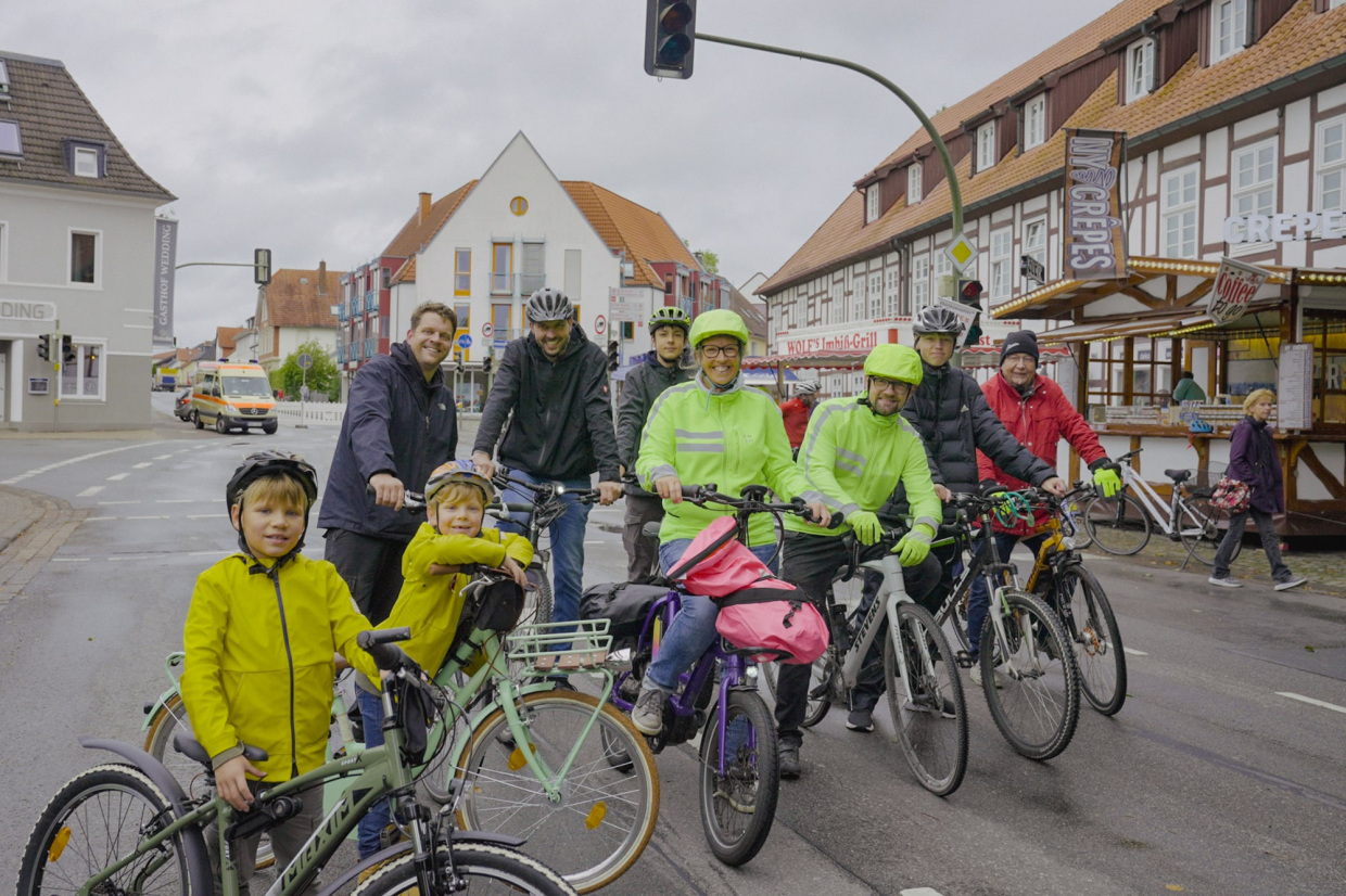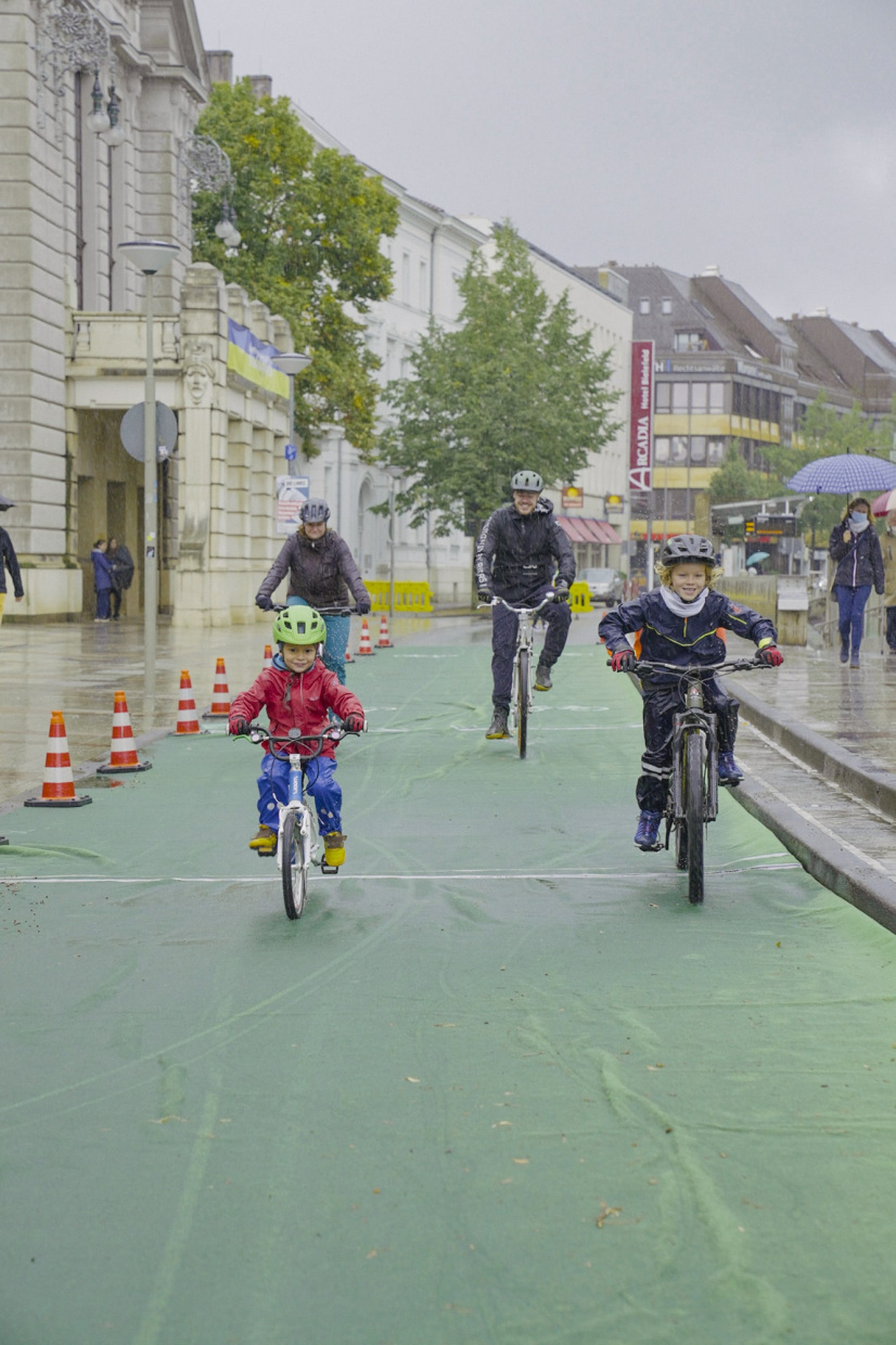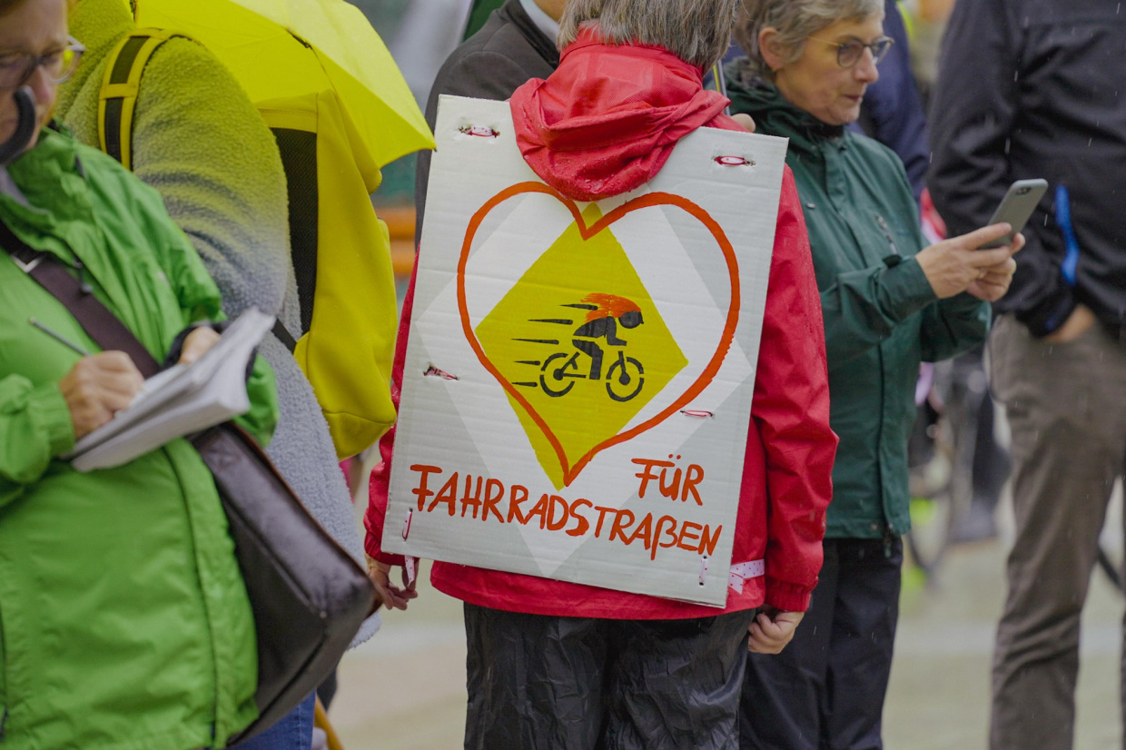 Die Eröffnung am Rathausplatz durch Pit Clausen (Oberbürgermeister der Stadt Bielefeld), Anette Nothnagel (REGIONALE-Managerin OWL GmbH), Christoph Rüther (Landrat Kreis Paderborn) und Oliver Krischer (Minister für Umwelt, Naturschutz und Verkehr des Landes Nordrhein-Westfalen) fand rege Teilnahme. Mit passender Kleidung konnte dem Regen bei guter Stimmung getrotzt werden. Oliver Krischer war nach der längeren Trockenperiode froh über die Wassermengen, die vom Himmel fielen. Martin Adamski (Dezernent für Umwelt, Mobilität, Klimaschutz und Gesundheit) sorgte mit der Preisverleihung des Stadtradelns für Strahlen in den Gesichtern der Preisträger*innen. Mitglieder des Radentscheids machten mit Plakaten und Bannern auf ihre Ziele aufmerksam.