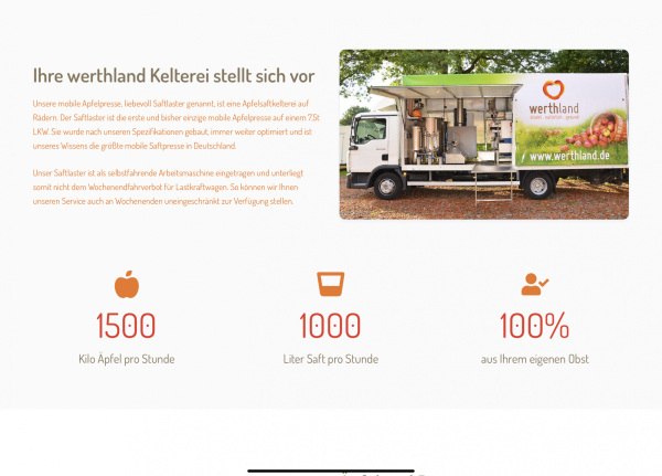 Herzlich willkommen bei werthland, Ihrer mobilen Kelterei aus Ostwestfalen. Wir pressen Ihre Äpfel und Sie erhalten Ihren eigenen, natürlichen Saft.